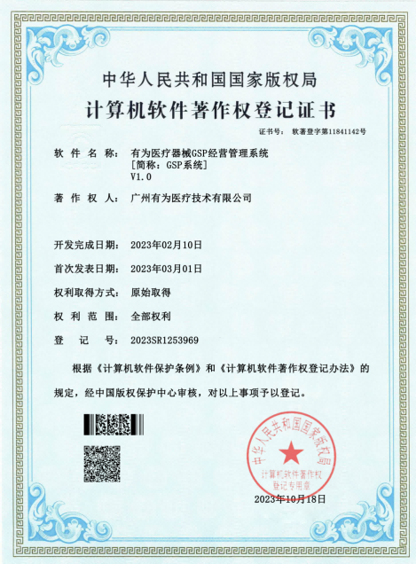 有為醫療器械GSP經營管理系統-軟件著作權